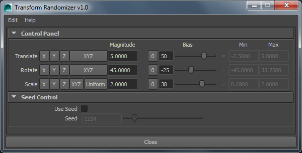Transform Randomizer is part of the FX Python Tools library. Download fxpt from GitHub and add it to your PYTHONPATH directory.